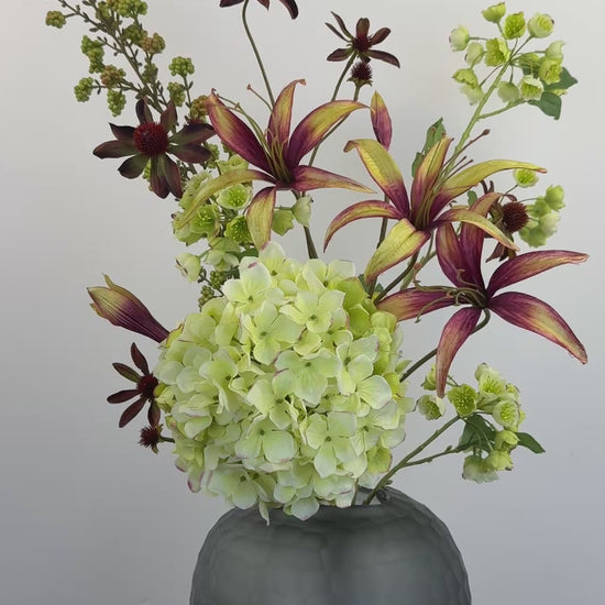 Das stilvolle Kunstblumen-Bouquet „Sea Breeze“ vereint sanfte Hellgrün-, Mauve- und Braun-Töne zu einem harmonischen Arrangement, das jedem Raum eine frische und zugleich edle Ausstrahlung verleiht. Dezente grüne Akzente und die natürliche Eleganz der Blumen schaffen eine stilvolle, zeitlos schöne Atmosphäre.